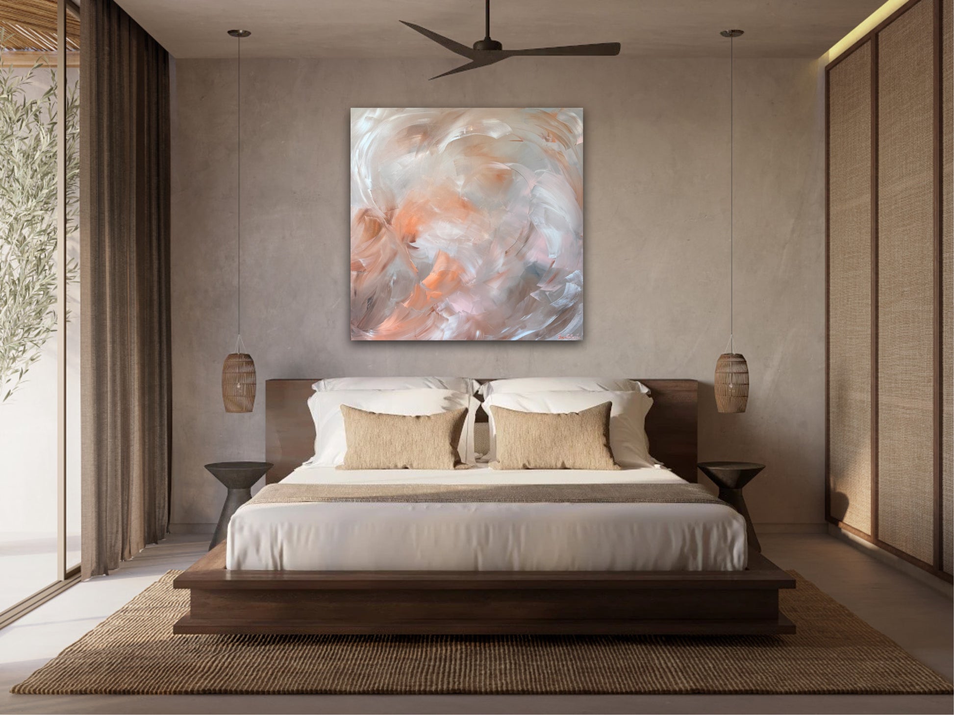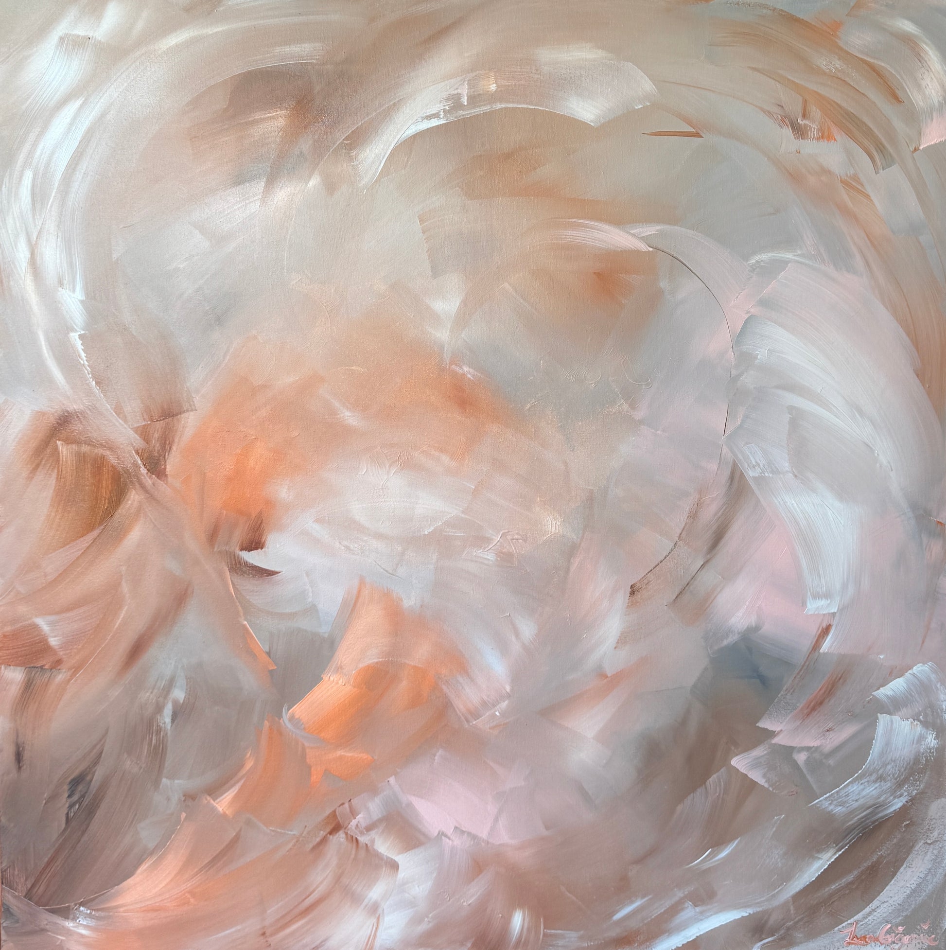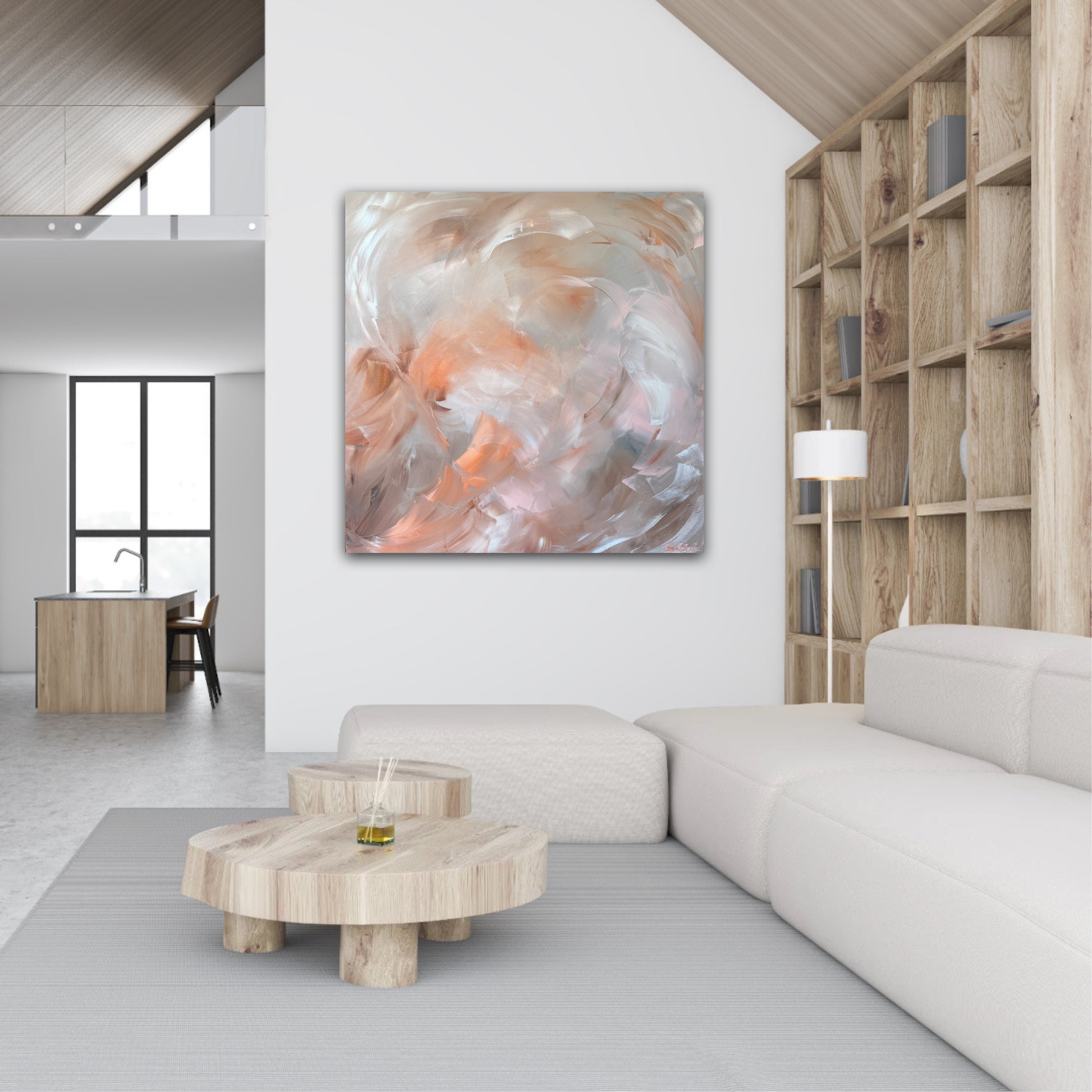 The subtle warmth woven through the cooler tones creates a sense of balance and calm, while the movement in the brushwork keeps it alive and expressive. Designed to bring softness and understated elegance into a space. This artwork pairs beautifully with neutral interiors.