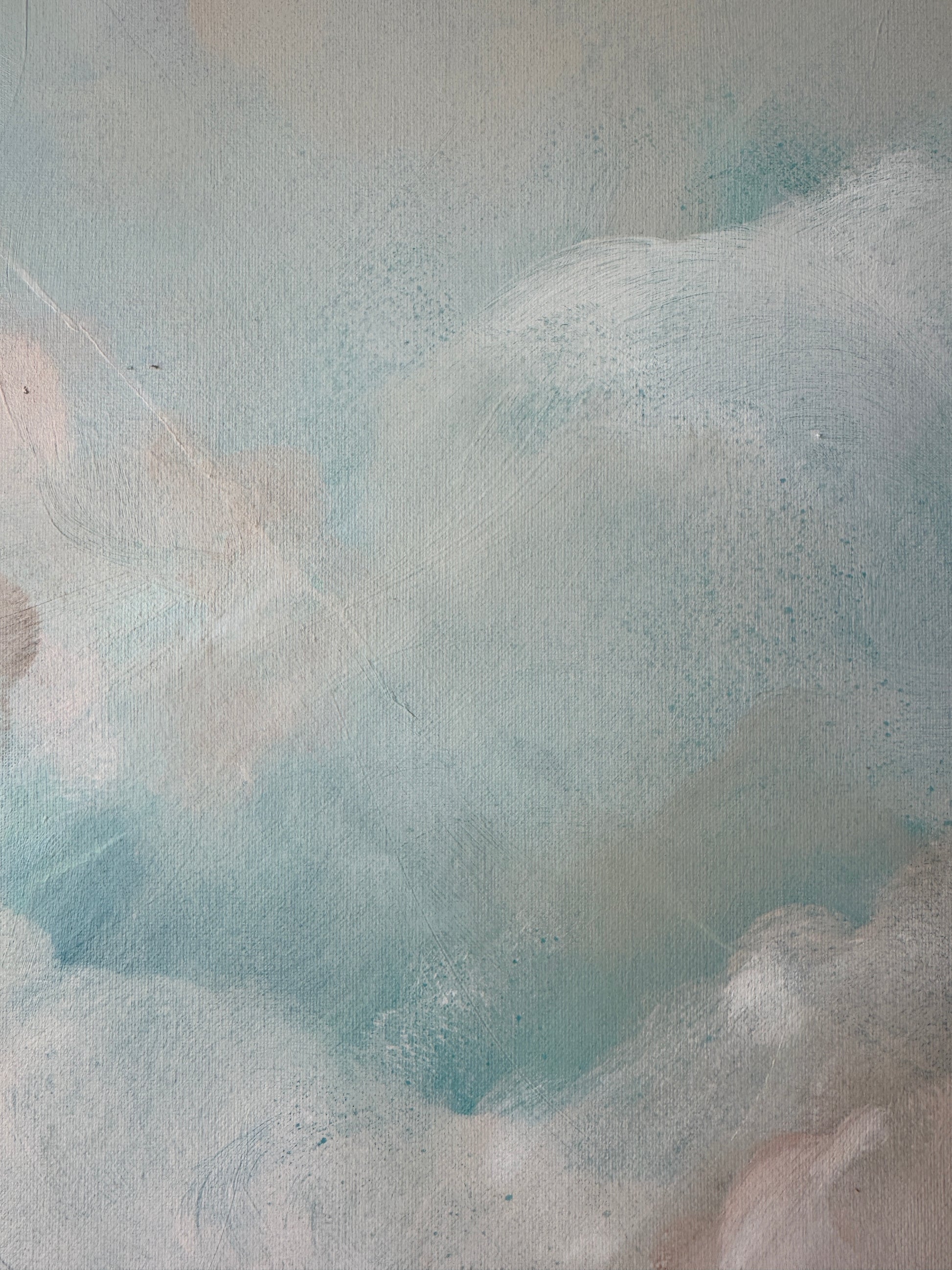 'Celestial Calm' is a gentle escape into a world of soft skies and drifting light. Painted in calming tones of blush, warm beige and soft blue, it captures the dreamy stillness of clouds merging at sunrise.