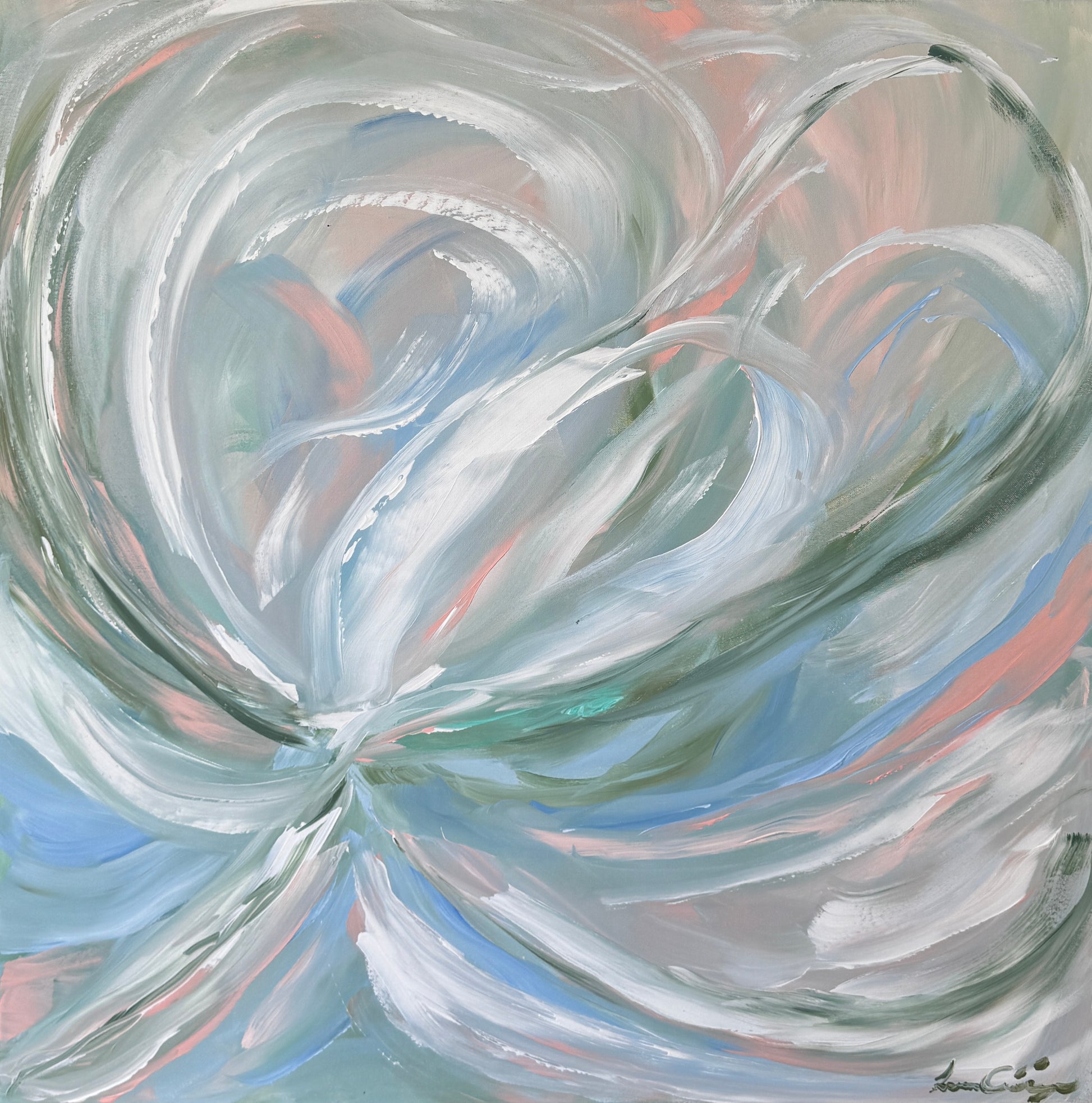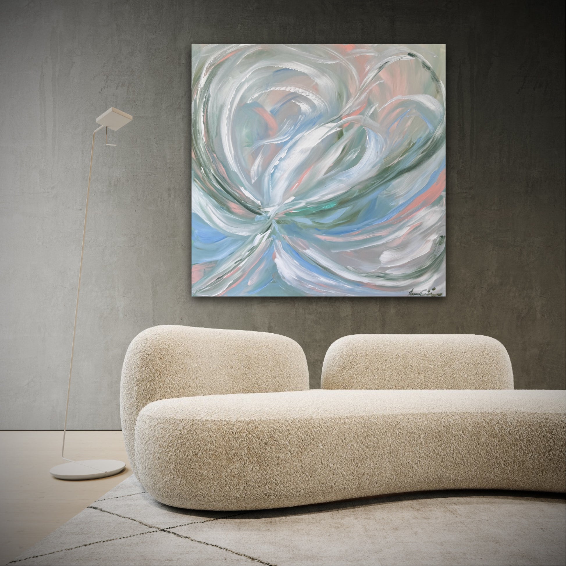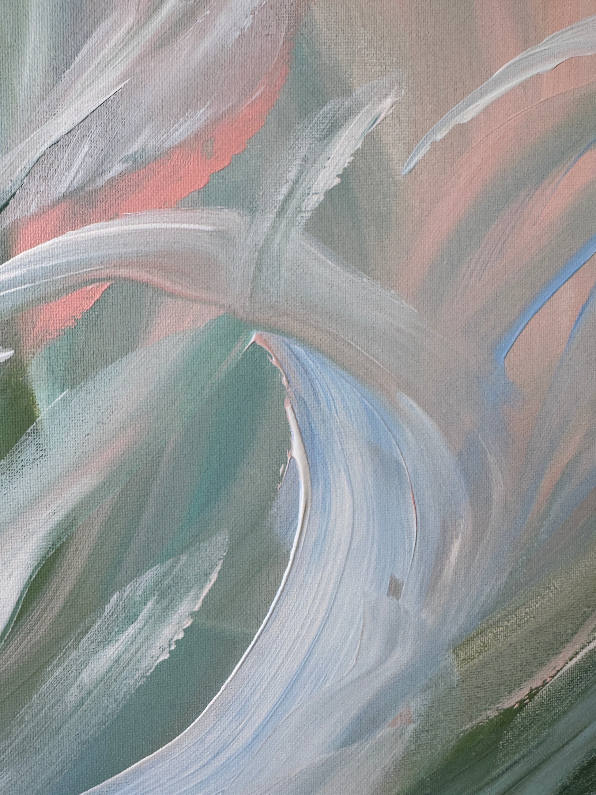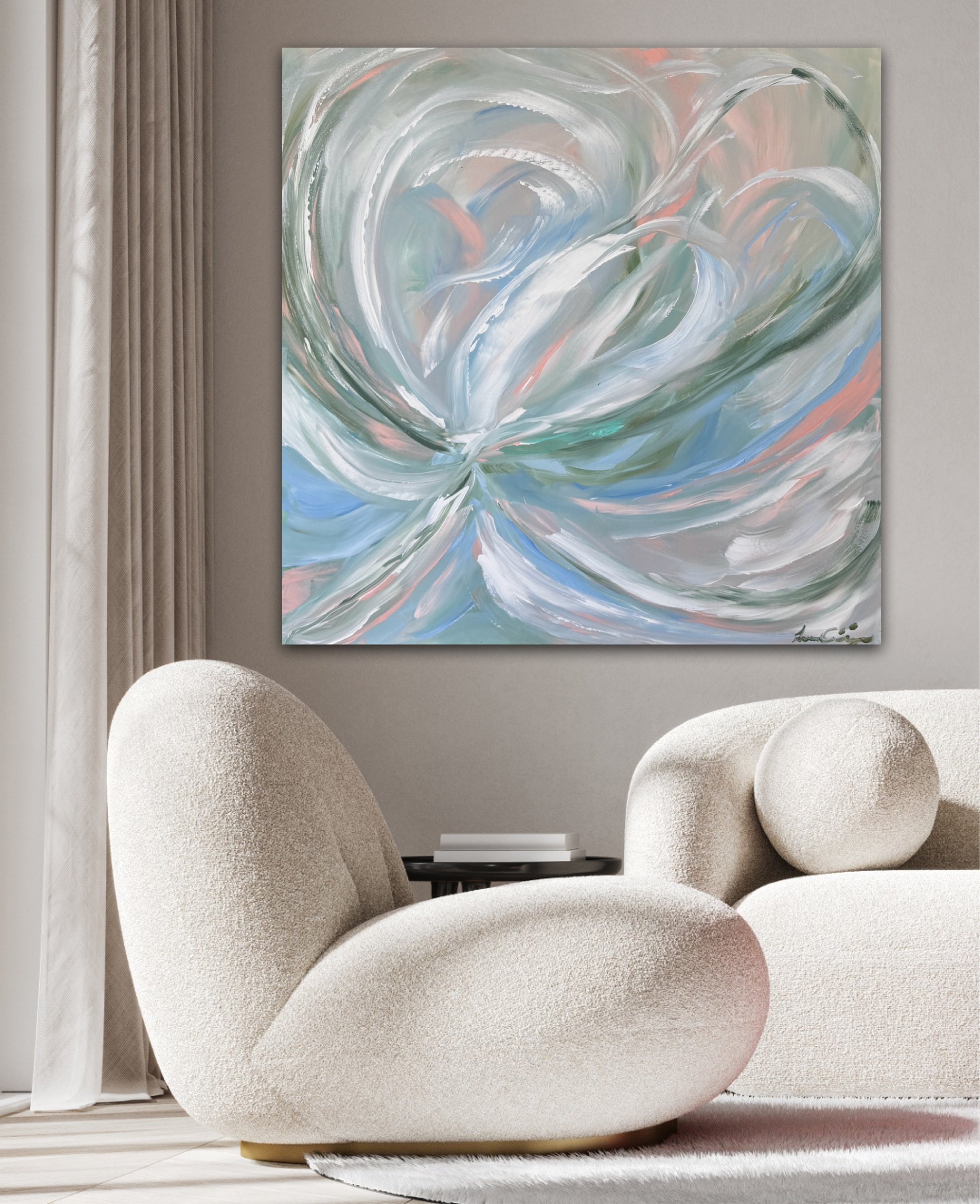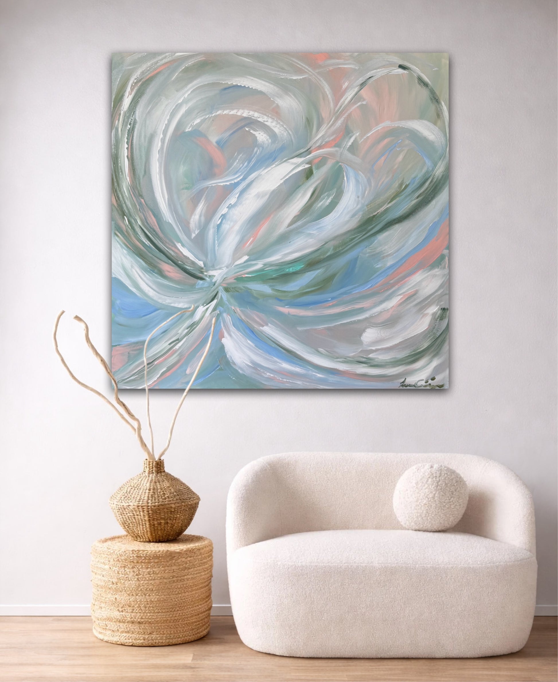 This piece was created with a really calm, open feeling in mind. The soft layers and movement make it easy to style in a space but it still has enough presence to pull everything together. It's the kind of artwork that makes the room feel more peaceful and calm.